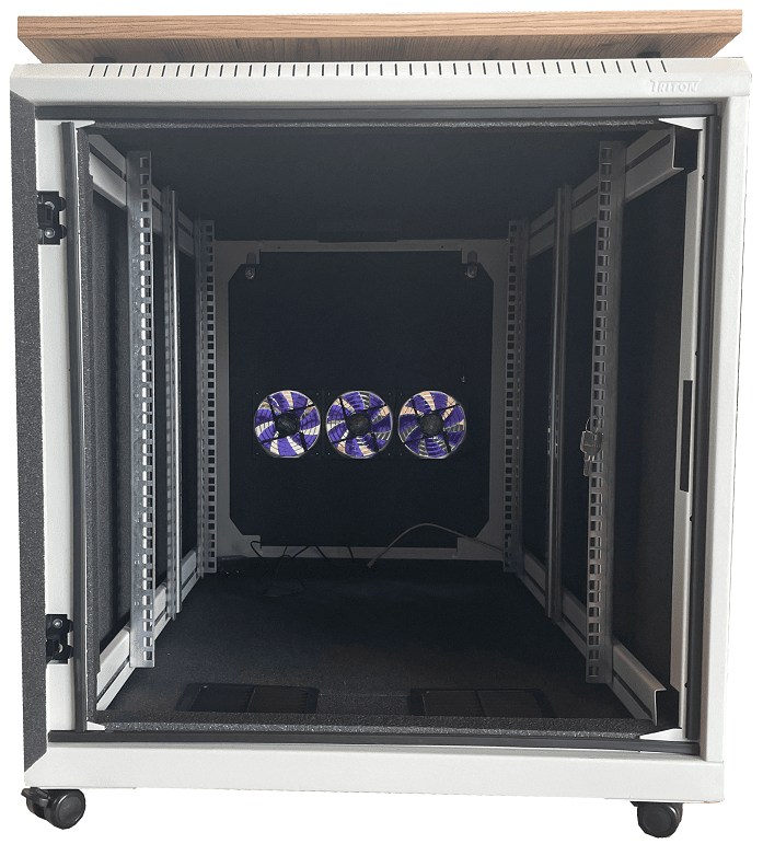 - Rückwand mir 2 ausblasenden Silent-Lüftern mit ca. 200m³/h freiblasend