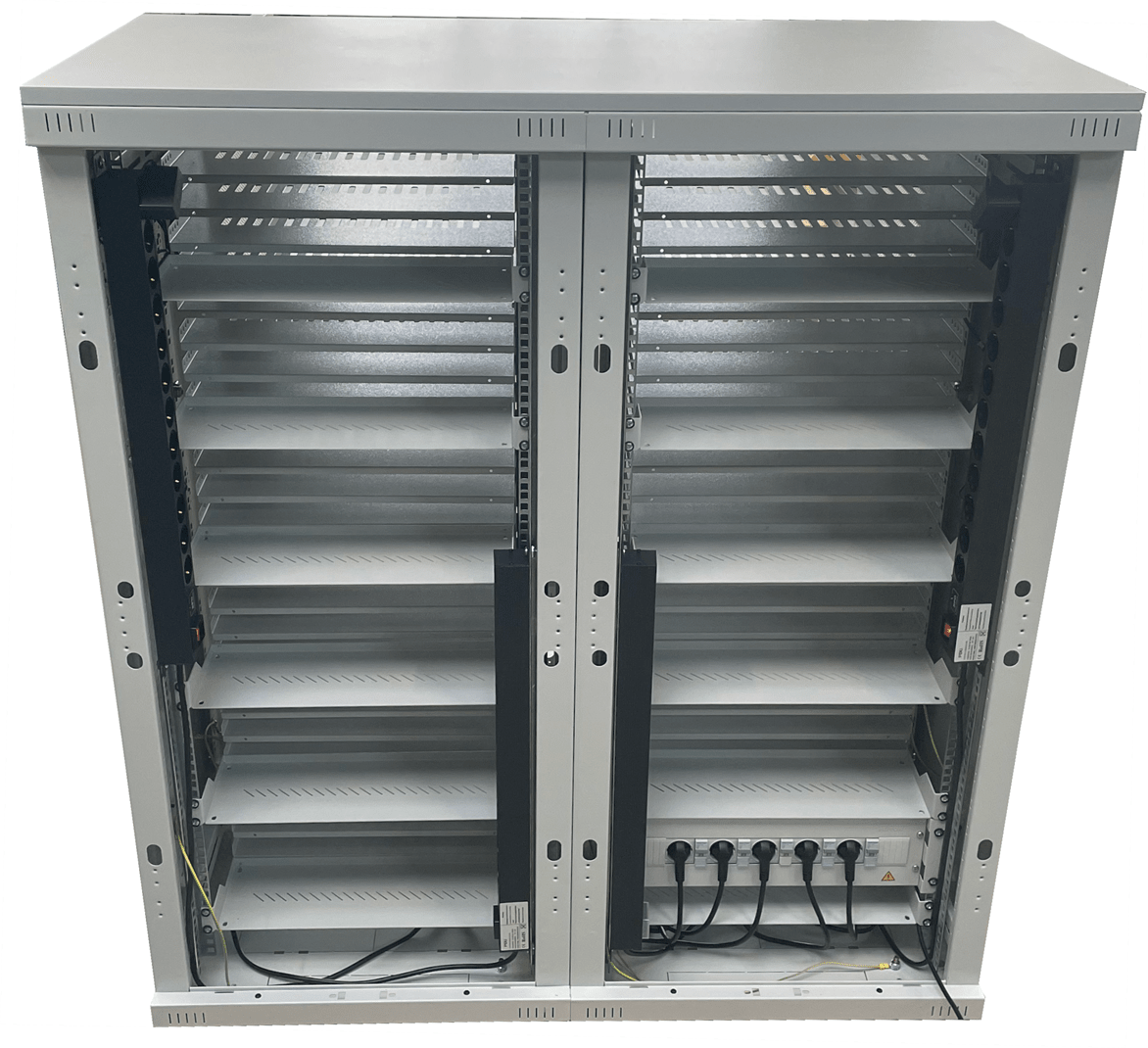 Unser System Doppelschrank "Notebook" wurde speziell für Unternehmen, Universitäten und moderne Bildungseinrichtungen entwickelt. Dank seines modularen Aufbaus auf Basis der 19-Zoll-Systemtechnik lässt er sich jederzeit erweitern und genau auf Ihre Bedürfnisse anpassen.